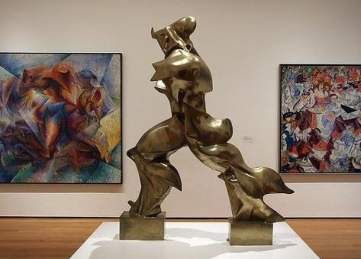 Un corpo in movimento, infatti, non è statico, ma dinamico, non si ferma più l’opera d’arte in un unico fotogramma come nella fotografia, ma diventa cinema, immagini in movimento. Colte in un istante dinamico. È l’idea mutuata da Eraclito: «Tutto si muove, tutto corre, tutto svolge rapido». Plasticamente espresso nel Manifesto tecnico dei futuristi: «I nostri corpi entrano nei divani in cui sediamo e i divani entrano in noi».