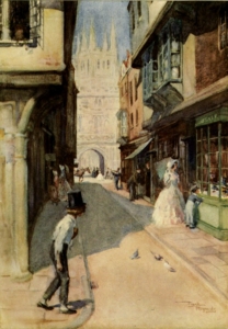 Illustrazione della cittadina di Canterbury, come descritta nel romanzo “David Copperfield”.