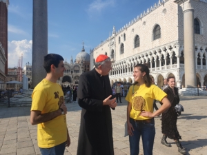 Due studenti residenti a Santa Fosca salutano il patriarca di Venezia Francesco Moraglia. Fonte: Casa studentesca Santa Fosca