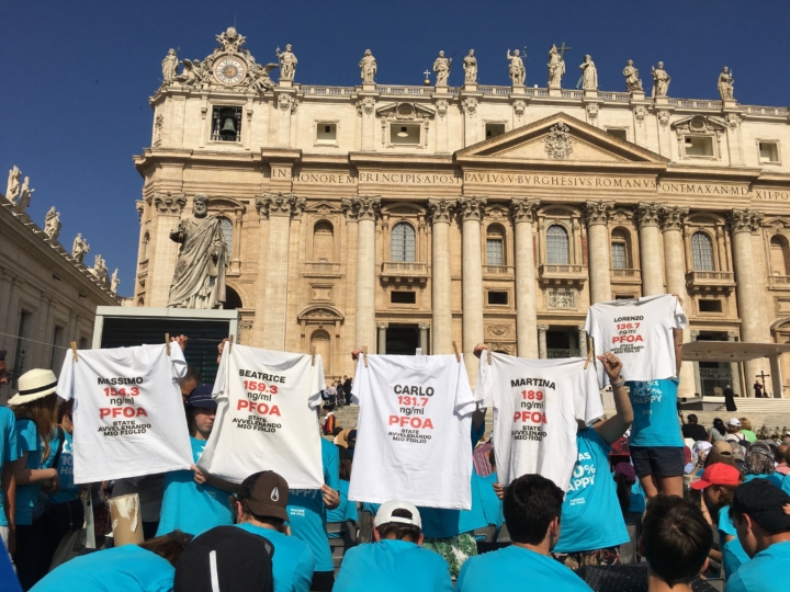 Il movimento della mamme NoPfas, come tante altre realtà nate dal basso, dimostra una capacità di analisi e strategia che mette in campo diverse competenze. Manda una sua delegata in un importante convegno scientifico a Boston, cerca contatti in sede europea per far adottare nuove direttive sulle acque così come ha ottenuto un rapporto diretto con il ministro italiano dell’Ambiente, generale Giuseppe Costa, al quale ha indirizzato, e consegnato in ministero, una lettera di sollecito nello stesso giorno dell’udienza papale. Una delegazione delle mamme, in mattinata, ha presentato, con una conferenza stampa, un documentario d’inchiesta di Andrea Tomasi presso la sede della rivista Il Salvagente.