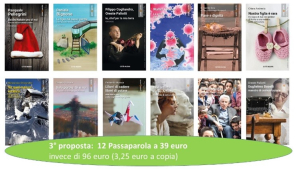 La proposta continua con i volumi della rivista Passaparola, in abbonamento 4 all’anno, con periodicità trimestrale. Romanzi che raccontano storie, alcune ispirate a fatti veri, fatte per immedesimarsi, emozionarsi e sognare; storie da far passare di mano in mano, di cui raccontare o da leggere e rileggere. Per chi non è abbonato è ora possibile recuperare gli ultimi anni con tre interessanti occasioni da non perdere.