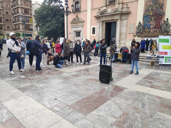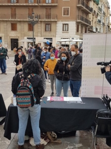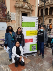 Foto dell’evento di raccolta firme tenutosi a Valencia (Spagna) il 19 febbraio 2022. Tratto da Twitter, pubblicato dall’associazione Mujeres, Voces y Resistencias, @mvr_vlc