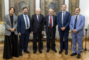 Il Presidente Sergio Mattarella con la delegazione di Archivio Disarmo e Peter Asaro, Vice direttore Campaga internazionale Stop Killer Robots e Colomba d’Oro per la Pace 2024, al termine dell’incontro, 8 ottobre 2024. NPK ANSA / Paolo Giandotti – Ufficio per la Stampa e la Comunicazione della Presidenza della Repubblica