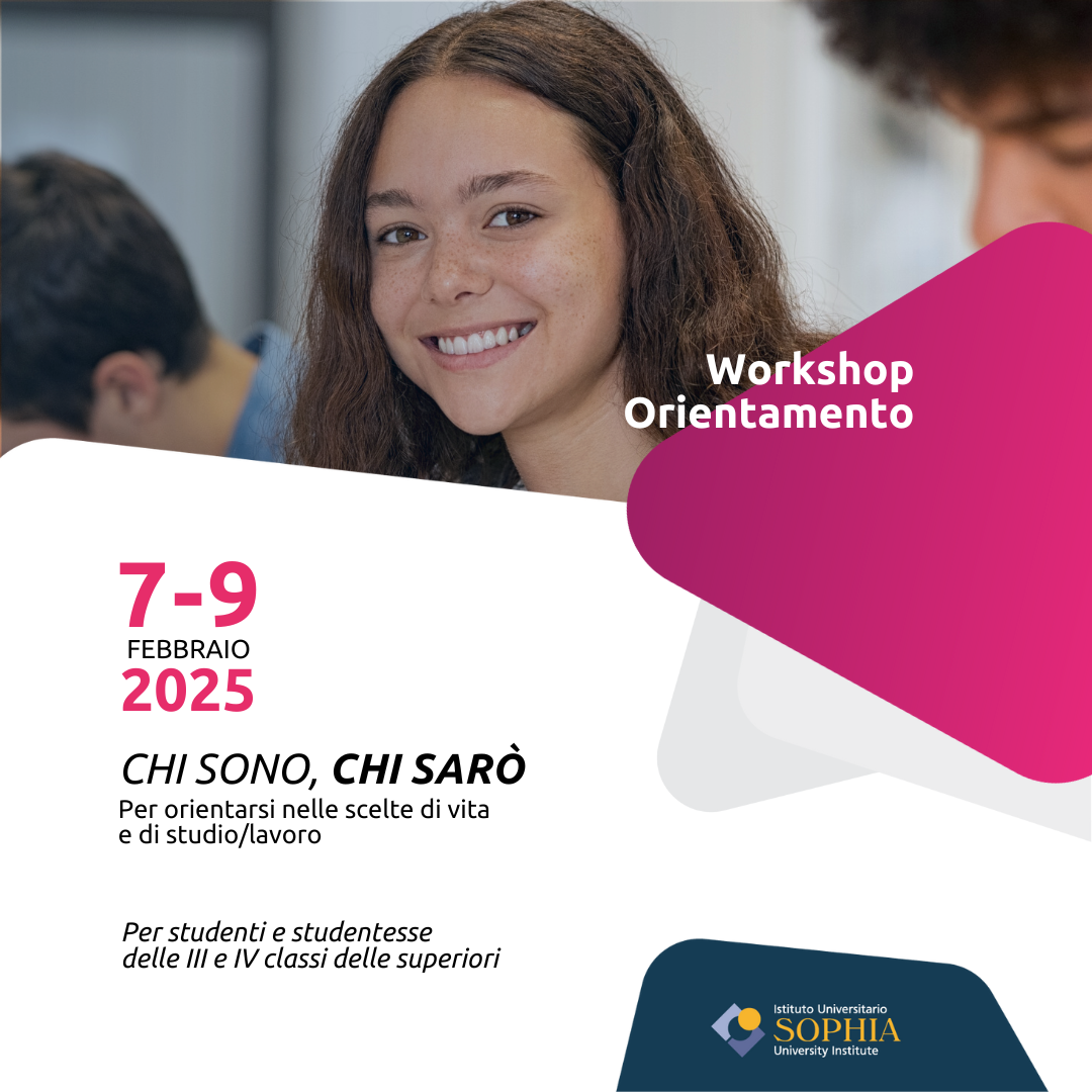 Infine, un’iniziativa un po’ speciale dell’Istituto Universitario Sophia: “Chi sono, chi sarò, il workshop sull’orientamento rivolto a studenti e studentesse delle III e IV classi superiori delle scuole italiane, per supportarli nelle esigenze di orientamento in questa preziosa e delicata fase della vita.