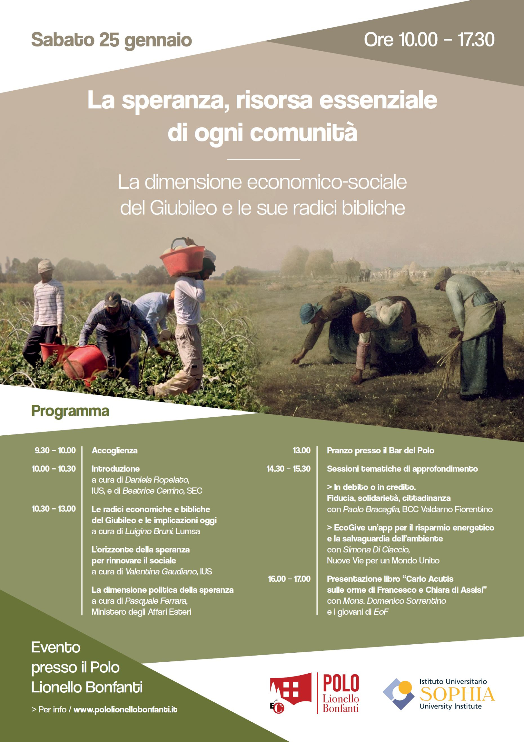 Il 25 gennaio, il Polo, in collaborazione con l’Istituto Universitario Sophia, organizza una giornata aperta a tutti per esplorare anche il dialogo tra Bibbia ed economia. Al centro dell’evento c’è il tema del Giubileo, che nella tradizione giudaica evocava un tempo di liberazione e rinnovamento: dalla restituzione delle terre alla remissione dei debiti, fino alla liberazione degli schiavi. Questo antico richiamo trova oggi nuova vita nelle sfide contemporanee, interrogando il nostro approccio alla giustizia economica e alla sostenibilità sociale.