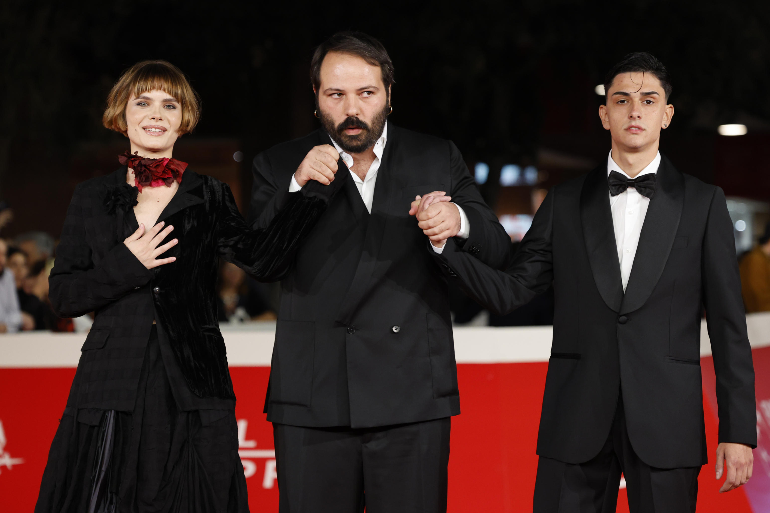 Anastasia Kaletchuk, Edgardo Pistone e Marco Adamo alla presentazione del film “Ciao bambino” alla Festa del Cinema di Roma 2024. ANSA/FABIO FRUSTACI