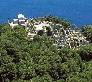 Pur ridotta al puro scheletro, essa giganteggia ancora in cima al Monte Tiberio, circa 300 metri a strapiombo sul mare; immense cisterne, atte a captare l’acqua piovana così preziosa in mancanza di altre vene d’acqua, erano al cuore della costruzione, che si espandeva in quartieri di soggiorno e belvedere che assecondavano senza violentarla la natura, com’era arte dei romani. A ovest della villa, ecco ciò che resta della specola dalla quale, in certe notti, l’imperatore era solito interrogare le stelle sui destini suoi e dell’impero, in compagnia del fido astrologo Trasillo. Più a sud invece, isolato e quasi in bilico su un mare turchese, sorgeva il faro che un terremoto rovinò; presagio infausto che precedette di pochi giorni la sua morte.