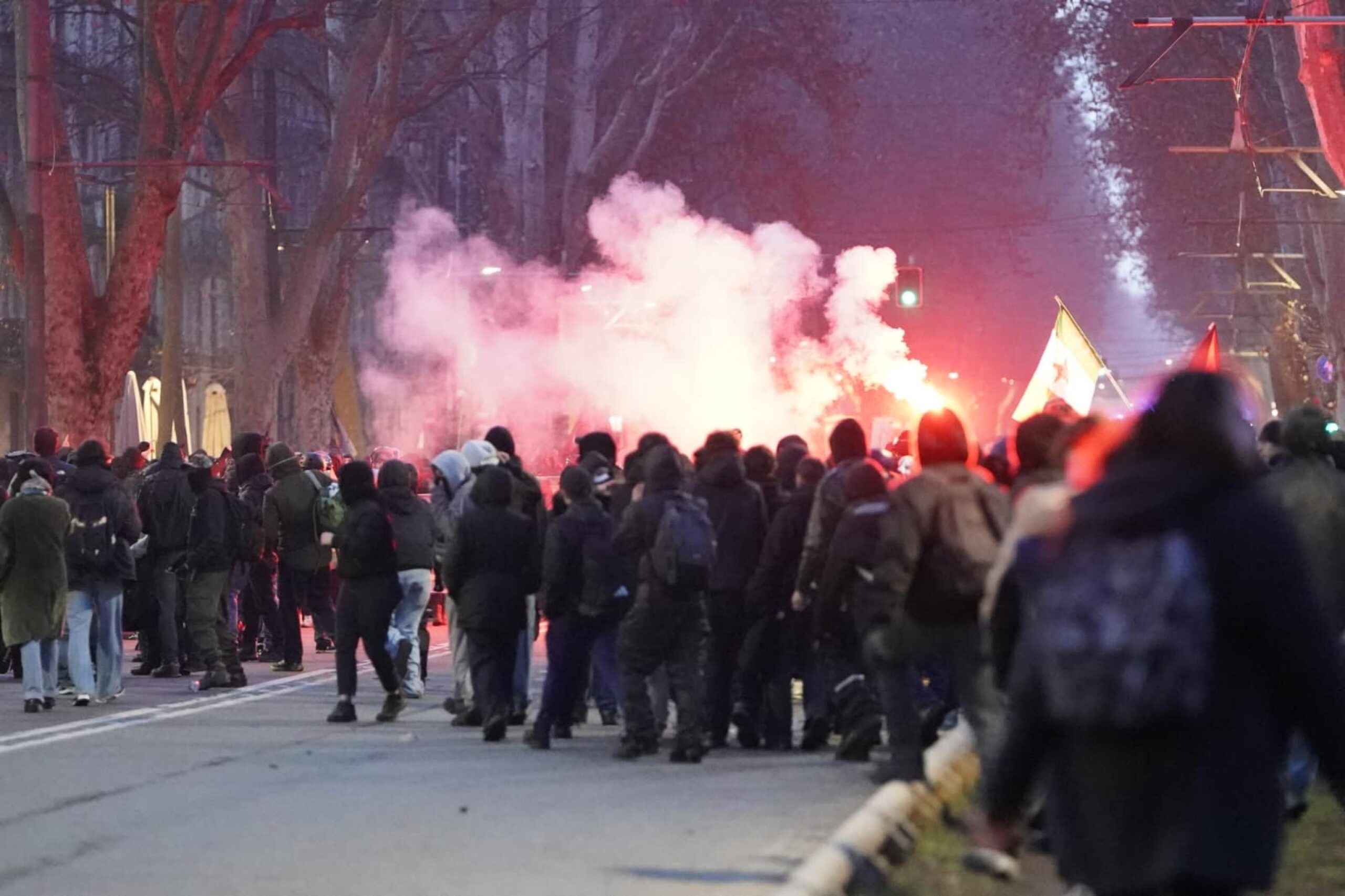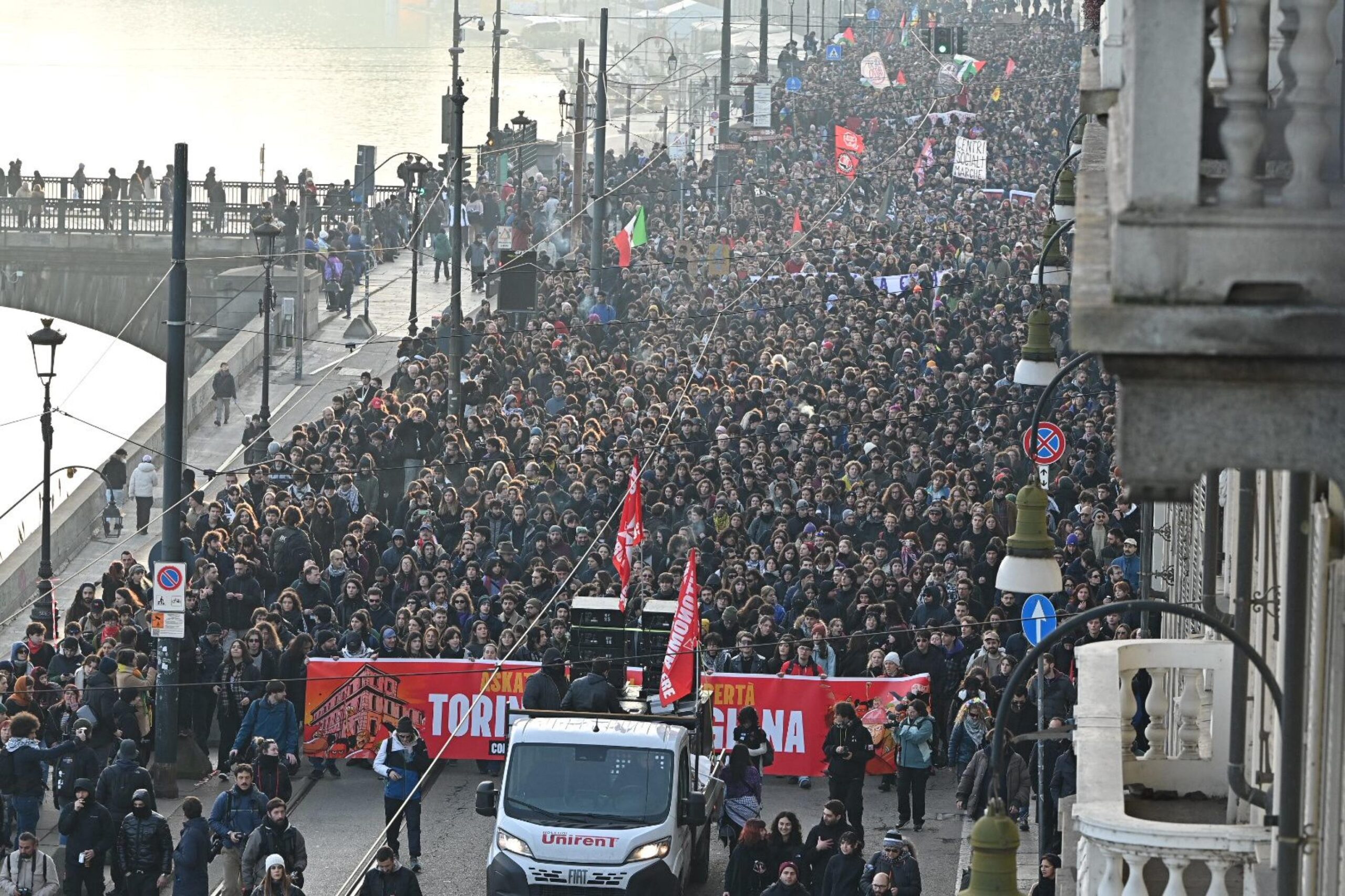 Il corteo nazionale contro lo sgombero del centro sociale Askatasuna a Torino, 31 gennaio 2026. ANSA/Alessandro Di Marco
