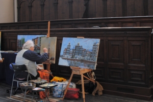 Un artista che dipinge paesaggi olandesi in una chiesa. (Foto di Miriana Dante)