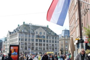 Piazza Dam, la principale di Amsterdam. Il palazzo sullo sfondo è Madame Toussauds, il museo delle cere. (Foto di Miriana Dante)