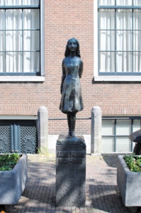 Una statua di Anna Frank nei pressi del nascondiglio in Prinsengracht 263. (Foto di Miriana Dante)