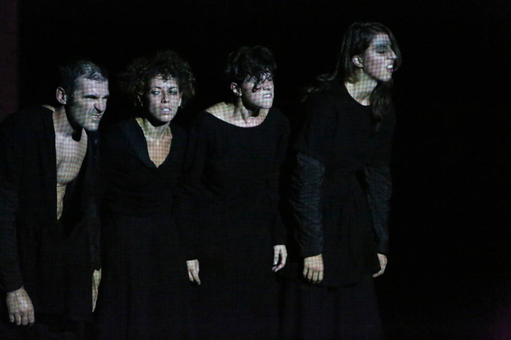Da un’umanità collettiva si passa all’individuo; e intanto s’intrecciano, si ostacolano, si sgambettano, si torturano, si trascinano, si bloccano. La reiterazione, tra contrazioni e fluidità, trova cambi di gesti con ondeggiamenti del busto, disarticolazione dei muscoli, ghigni, mani sugli occhi, braccia penzoloni, rotolamenti a terra, mentre la spossatezza si impadronisce dei corpi, ma senza cedimenti. Spettacolo avvincente che, concepito nel 2015 e vincitore di numerosi premi – fra cui la menzione speciale teatro-danza al BeFestival di Birmingham – continua a mietere consensi, e offrirsi al pubblico.