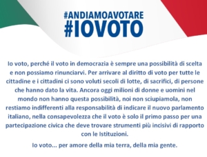 Un appello a tutti i cittadini e alle cittadine affinché si torni a considerare il voto come un diritto/dovere che rappresenta un pilastro essenziale per la vita democratica e volano per la costruzione del Paese che vogliamo.