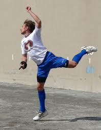 Il campo da gioco si chiama sferisterio. Il fondo è realizzato in terra battuta, ha una lunghezza di 90 metri e una larghezza che va dai 16 ai 18, uno dei lati lunghi è fiancheggiato da un muro di appoggio. La squadra in campo ha quattro giocatori: un battitore, una spalla, due terzini. Si gioca con la mano chiusa a pugno, protetta con strisce di cuoio e bende. La palla è in gomma, ha un diametro di poco più di dieci centimetri e pesa meno di due etti.