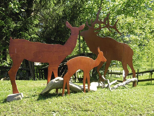 Sul limite del prato, là dove inizia un bosco di larici, sullo sfondo dell’imponente Jôf Fuârt innevato, si profila la sagoma svelta di un capriolo. Da lontano, lo si potrebbe scambiare per vero, mentre …