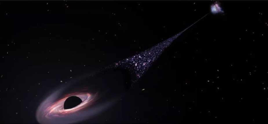 Scienza e tecnologia Il buco nero e la scia di stelle blu di Redazioneweb Scoperta una lunga scia di stelle trascinate da un buco nero in fuga dalla …