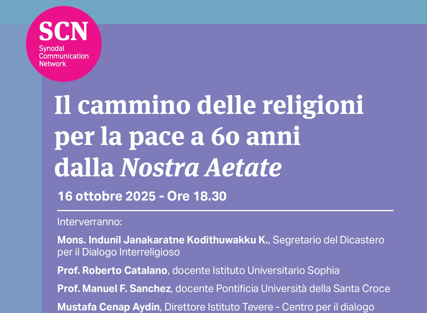 Dialoghi Il cammino delle religioni per la pace a 60 anni dalla Nostra Aetate di Miriam Iovino Appuntamento oggi 16 ottobre 2025 alle 18.30. Sarà possibile partecipare collegandosi alla piattaforma Zoom