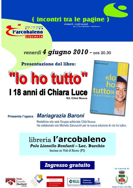 Dialoghi Io ho tutto. I diciotto anni di Chiara Luce Presentazione del libro di Michele Zanzucchi a Incisa Val d’Arno