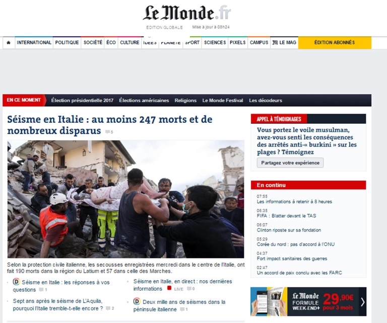 Società Il terremoto sulla stampa estera di Chiara Andreola New York. Sydney. Madrid. Londra. Mosca. Parigi. Berlino. I più importanti quotidiani del mondo …