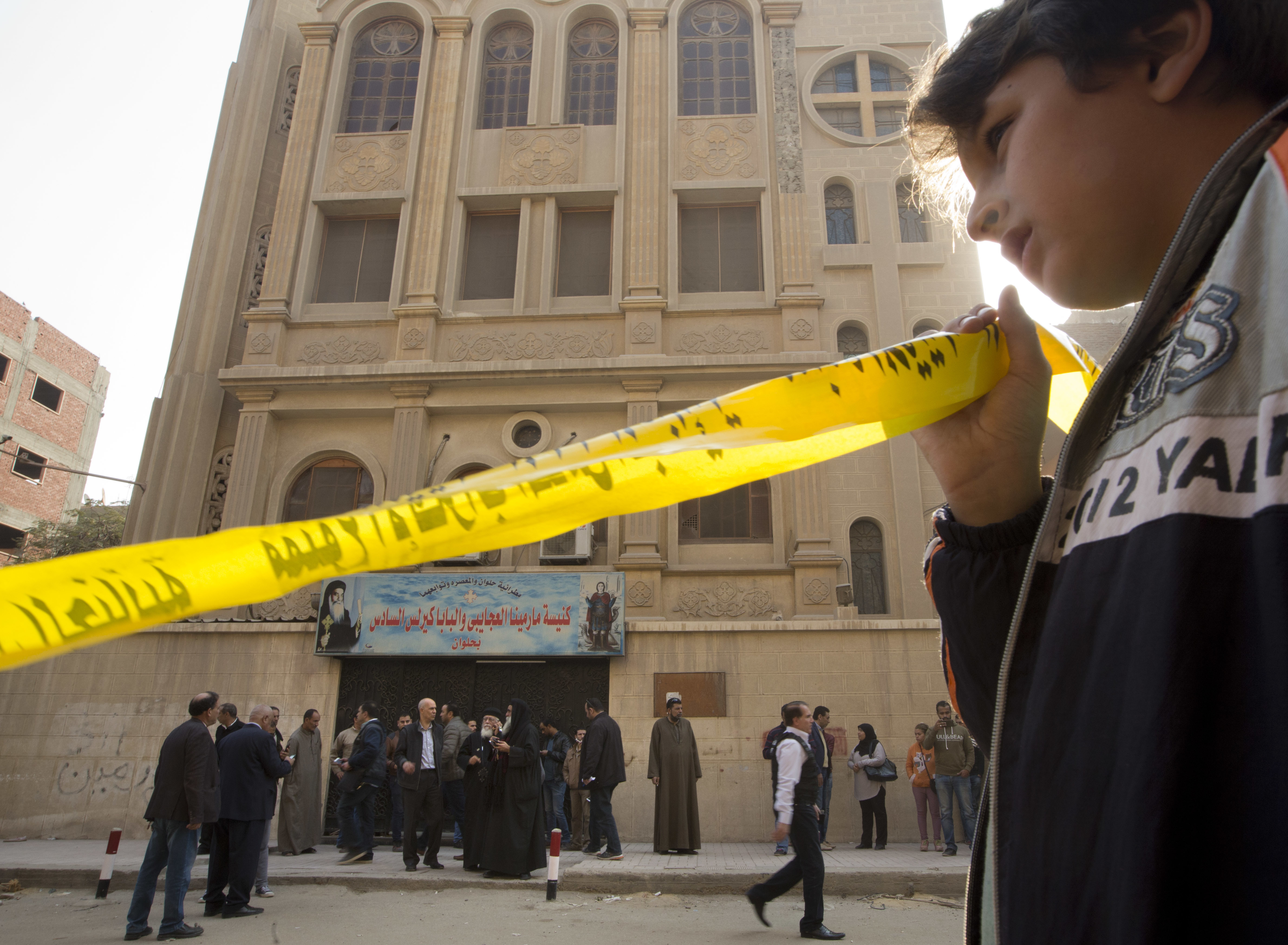 Esteri Attentato in Egitto Un ragazzo tiene tra le mani il nastro giallo che vieta l’accesso alla chiesa …