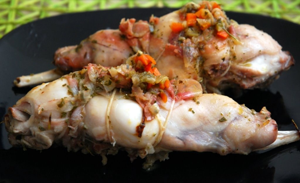 Cucina Cosce di coniglio alle erbe aromatiche di Max Fattorini Una preparazione semplice e gustosa arricchita dalle fettine di pancetta che mantengono la carne …