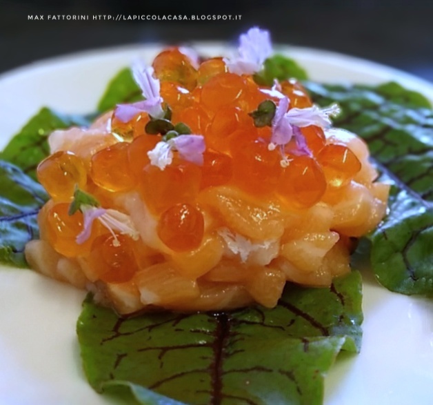 Cucina Tartare di salmone e le sue uova di Max Fattorini Un piatto velocissimo da preparare da decorare con delle foglie di rumex sanguineo e di …
