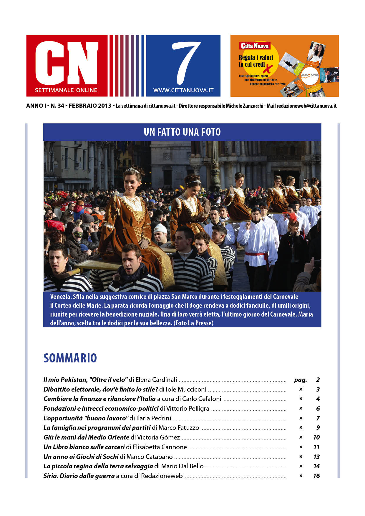 Società CN7 – 8 febbraio di Redazioneweb In questo numero lo scandalo Mps, la famiglia nei programmi elettorali dei partiti e …