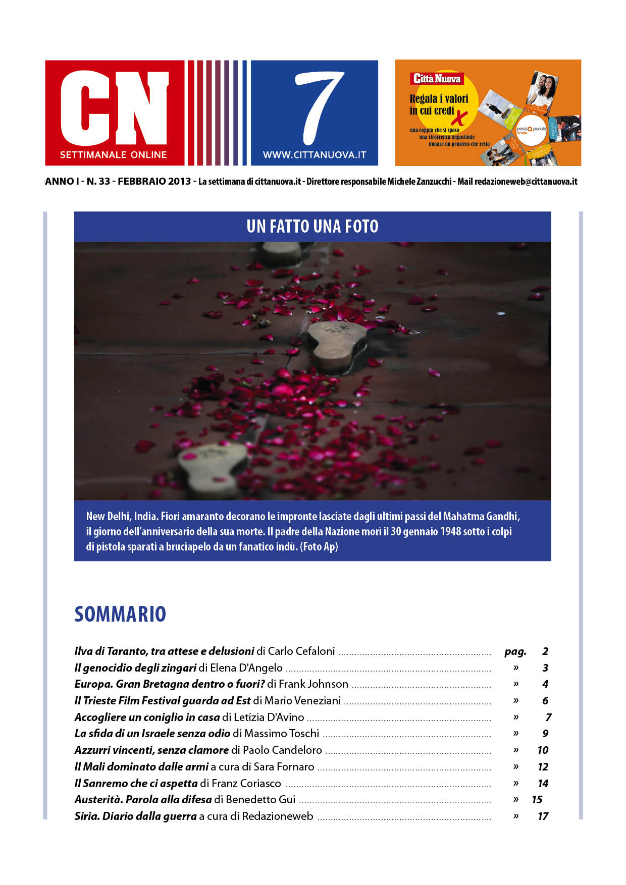 Società CN7 – 25 gennaio di Redazioneweb Nel settimanale online notizie dal Mali e dalla Siria. Un'indagine di Telefono azzurro rivela …