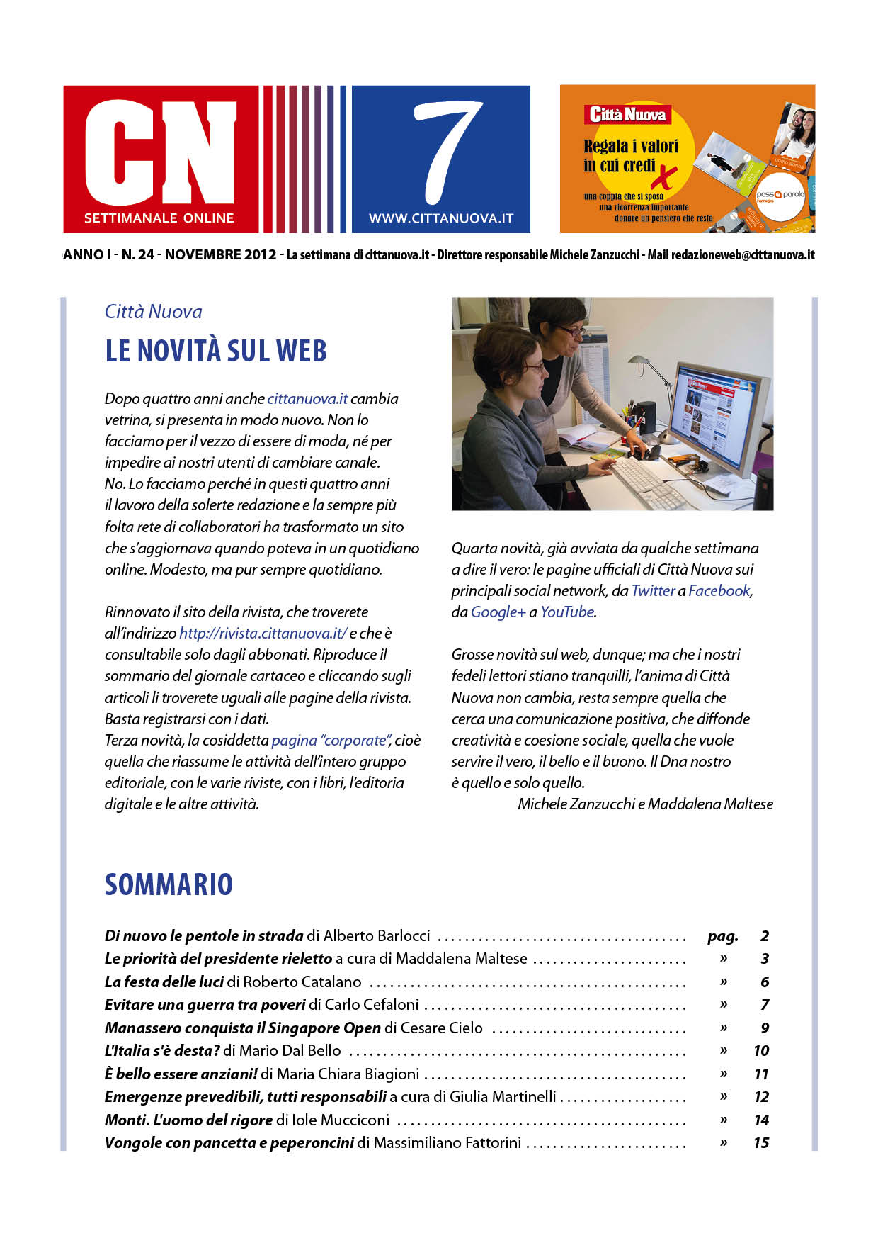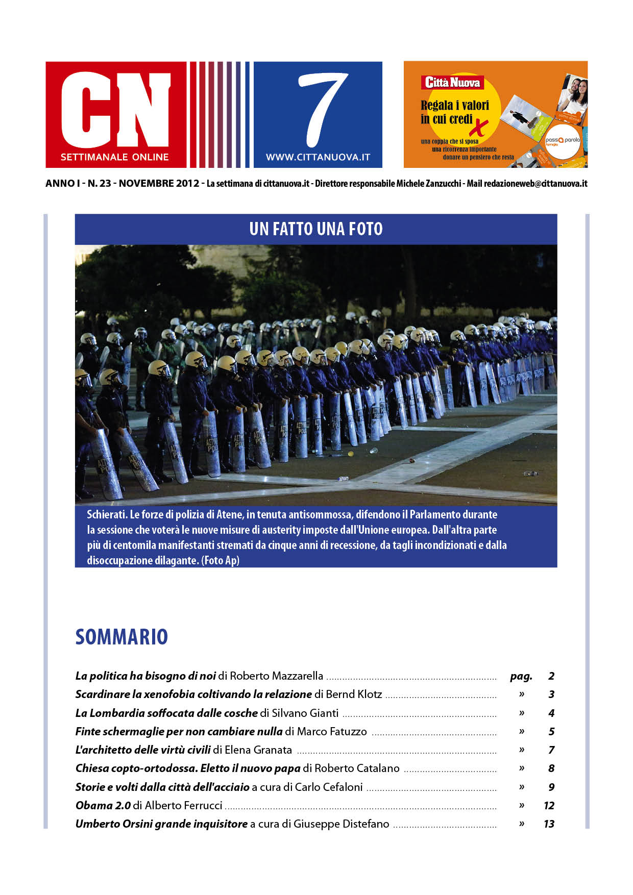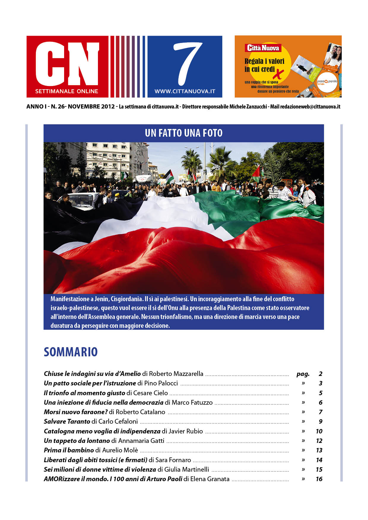 Società CN7 – 23 novembre di Redazioneweb Un numero denso di avvenimenti internazionali: la Striscia di Gaza, Obama in Myanmar con …