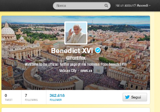 Società Il papa su Twitter di Claudia Di Lorenzi Presentato l'account di Benedetto XVI. A pochi minuti dal lancio erano già più di …
