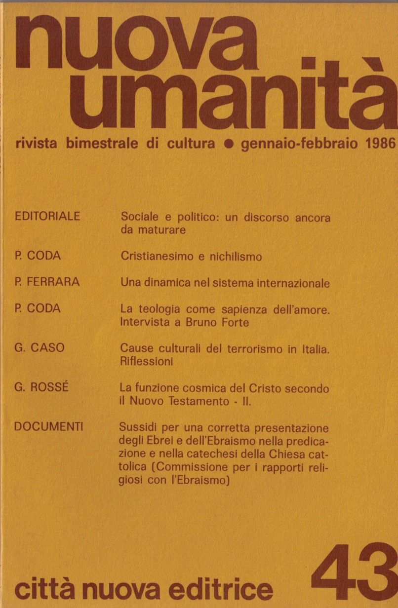 Si vuol dare un contributo alla comprensione di alcune cause remote, di natura culturale, del volgersi di una intera generazione di giovani all’idea e alla pratica della violenza politica. Due sembrano fondamentali e determinanti: le aspirazioni eluse della generazione del ’68; l’ideologia della violenza. E, ancora, e non meno determinante, la totale assenza nella formazione culturale dei giovani del ’68 delle grandi idee etico-politiche frutto delle conquiste storiche degli ultimi tre secoli. E qui, indubbiamente, nei confronti di quei giovani è stato consumato da parte del mondo della cultura di quegli anni, e forse da settori della classe politica, un grande tradimento. E per questo il superamento delle radici della crisi del ’68 interpella gli uomini della cultura e della politica perché i principi e i valori della Costituzione abbiano interpretazione e attuazione nelle regole del gioco politico.