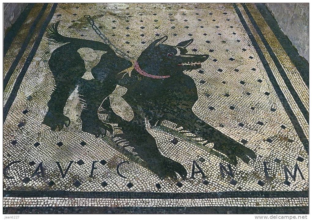 Accanto a quelli delle vittime umane, da sempre l’elemento più impressionante per chi visita Pompei, il calco di questo cane (forse l’”originale” di quello ritratto a mosaico?) rende palpabile la tragedia che coinvolse anche gli animali, questi umili ma preziosi collaboratori dell’uomo. È ancora visibile il collare col quale era legato a una catena che gli impedì di fuggire, condannandolo ad una morte atroce, come denotano le contrazioni dell’agonia. Toccante come la sua, sempre che la notizia sia vera, la sorte di un altro cane, il cui scheletro venne ritrovato su quello di un bambino, quasi a proteggerlo: dall’incisione sul collare risultava, assieme al suo nome Delta, che aveva salvato per ben tre volte la vita al padroncino Severino. Purtroppo, quel fatale giorno dell’anno 79, non ci era riuscito.