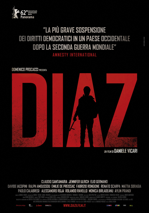 DIAZ Di Daniele Vicari; con Claudio Santamaria, Jennifer Ulrich. Il G8 di Genova raccontato come un thriller e horror su fatti reali con video e foto di grande violenza. Extra con il backstage, gli speciali …