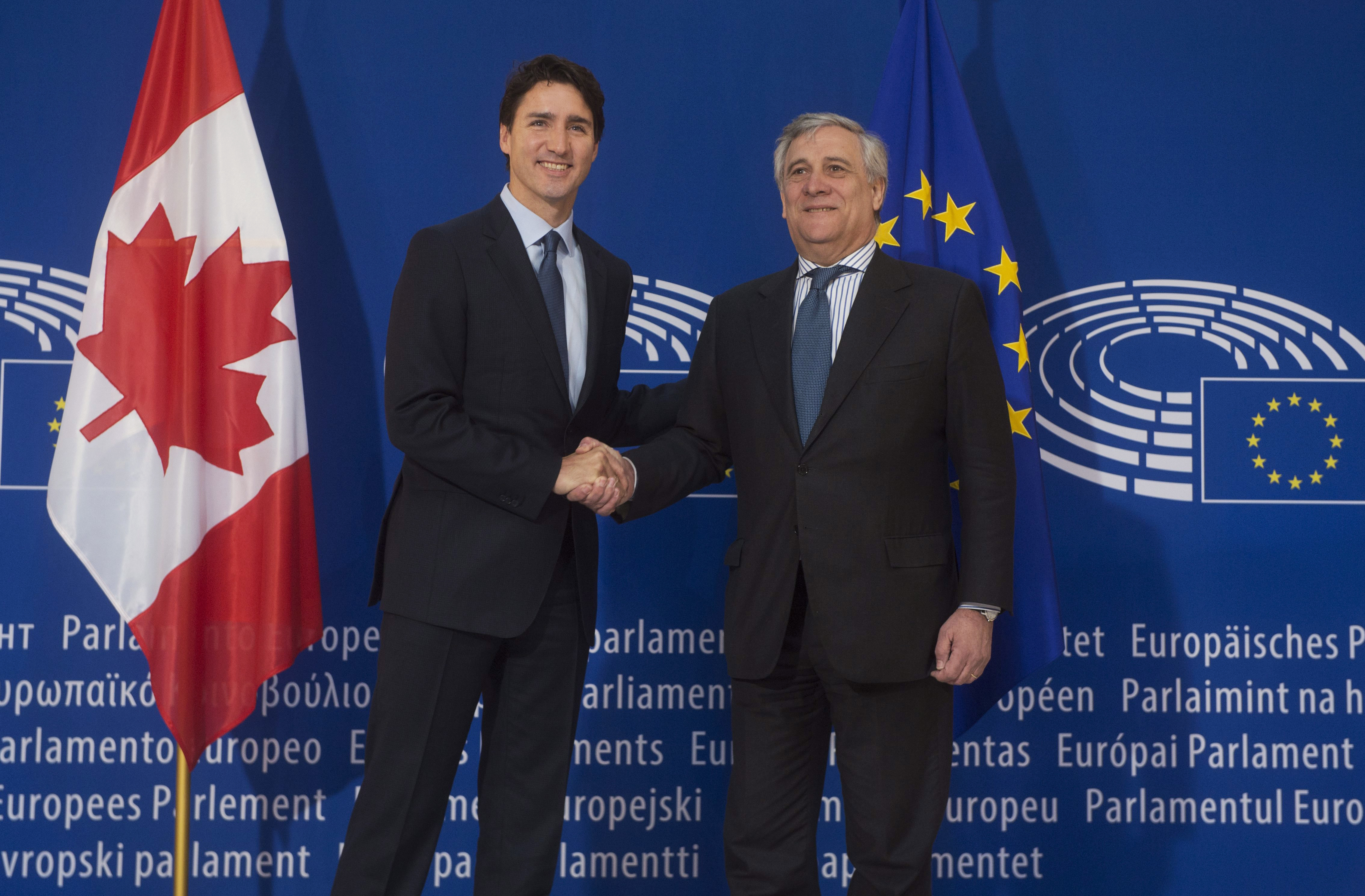Il primo ministro canadese Justin Trudeau e il presidente del Parlamento europeo Antonio Tajani