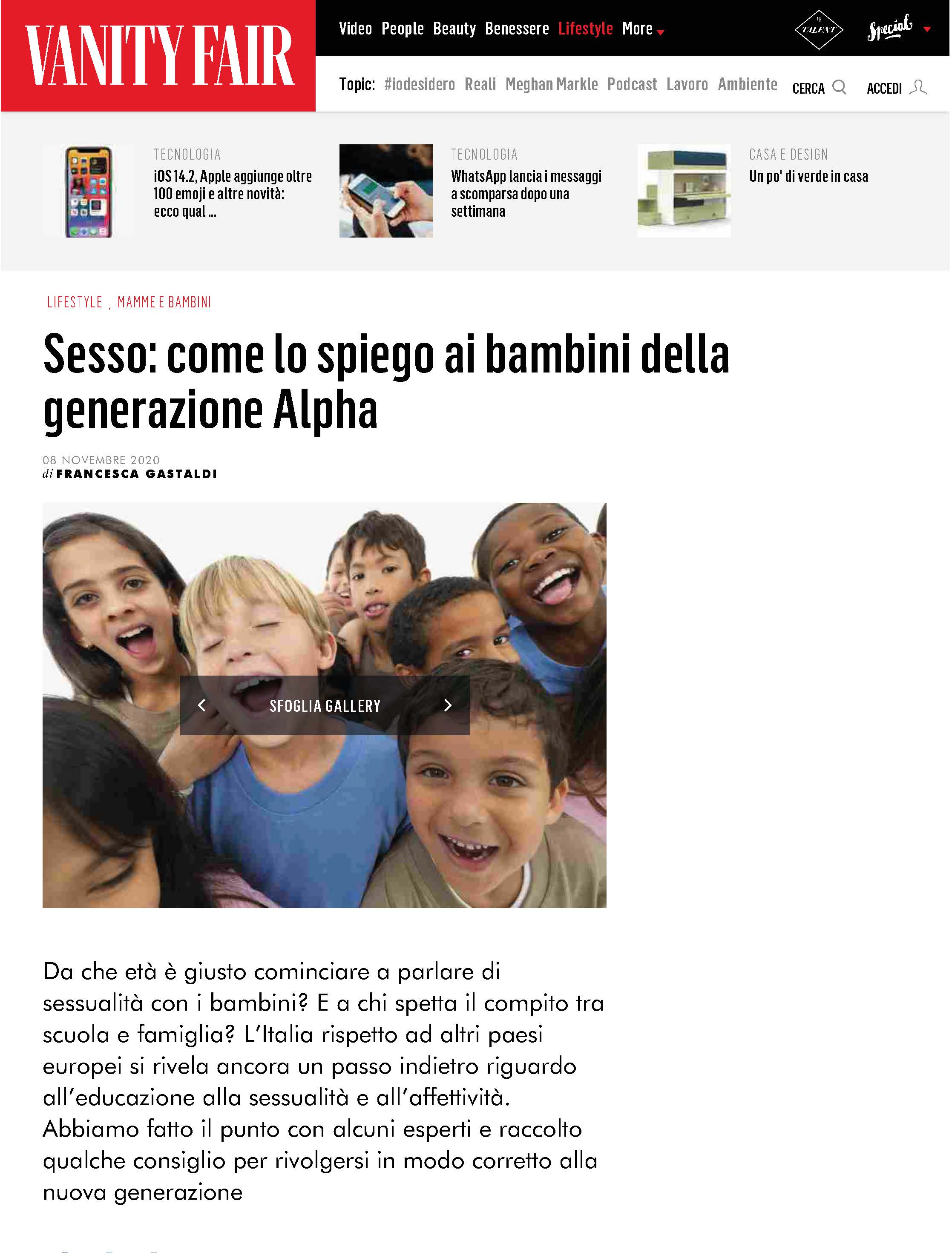 «Ad amare ci si educa» di Ezio Aceti e Stefania Cagliani su «Vanity Fair»