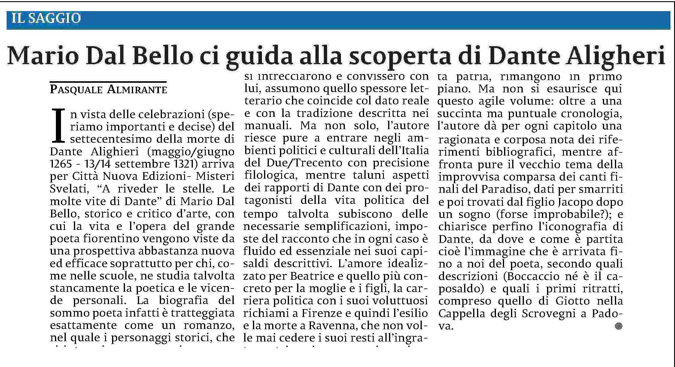 L’ultimo libro di Mario Dal Bello, «A riveder le stelle» in un articolo di Pasquale Almirante sul quotidiano «La Sicilia»