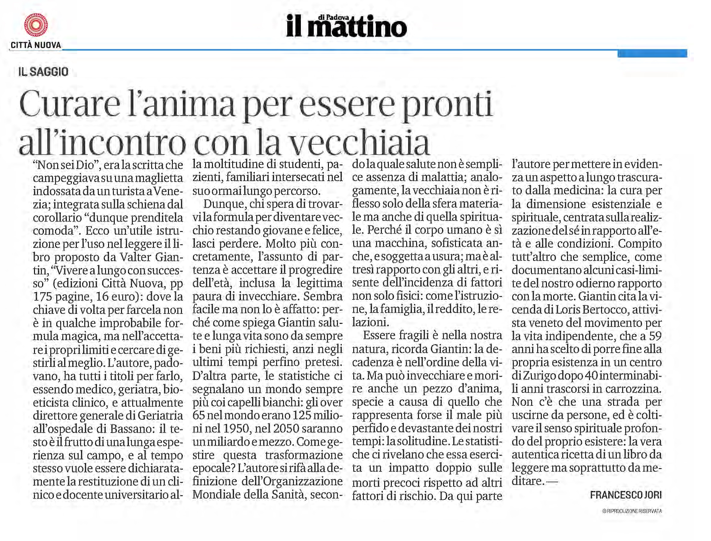 Vivere a lungo con successo sul «Mattino di Padova»