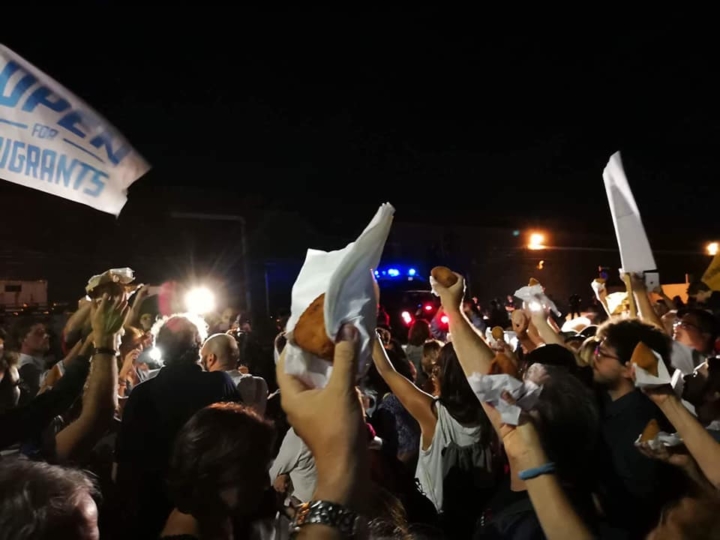 «L’arancino è un simbolo – spiega Nellina Laganà – un cibo identitario, ma anche un confine aperto. In Sicilia, quando si accoglie a casa una persona, lo si fa con il cibo. Con l’arancino, noi vorremmo dire ai nostri amici su quella nave il nostro desiderio di accoglierli, come persone e come amici, al di là di queste barriere. Questa notte, per noi, è stata un’esperienza durissima: vedere da lontano quella nave, è stata una cosa straziante. Le altre navi erano illuminate, la Diciotti no, c’era solo una lucetta flebile. E a bordo c’erano 117 persone: un’esperienza straziante».