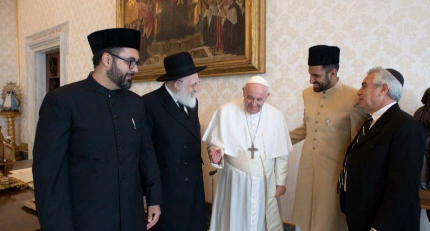 Nei giorni scorsi i co-fondatori della Fratellanza Giudeo-Musulmana dell’Argentina, insieme all’imam Ataul Wasih Tariq della Comunità Musulmana Ahmadiyya italiana, sono stati ricevuti in udienza da papa Francesco nella bblioteca privata del Palazzo Apostolico.