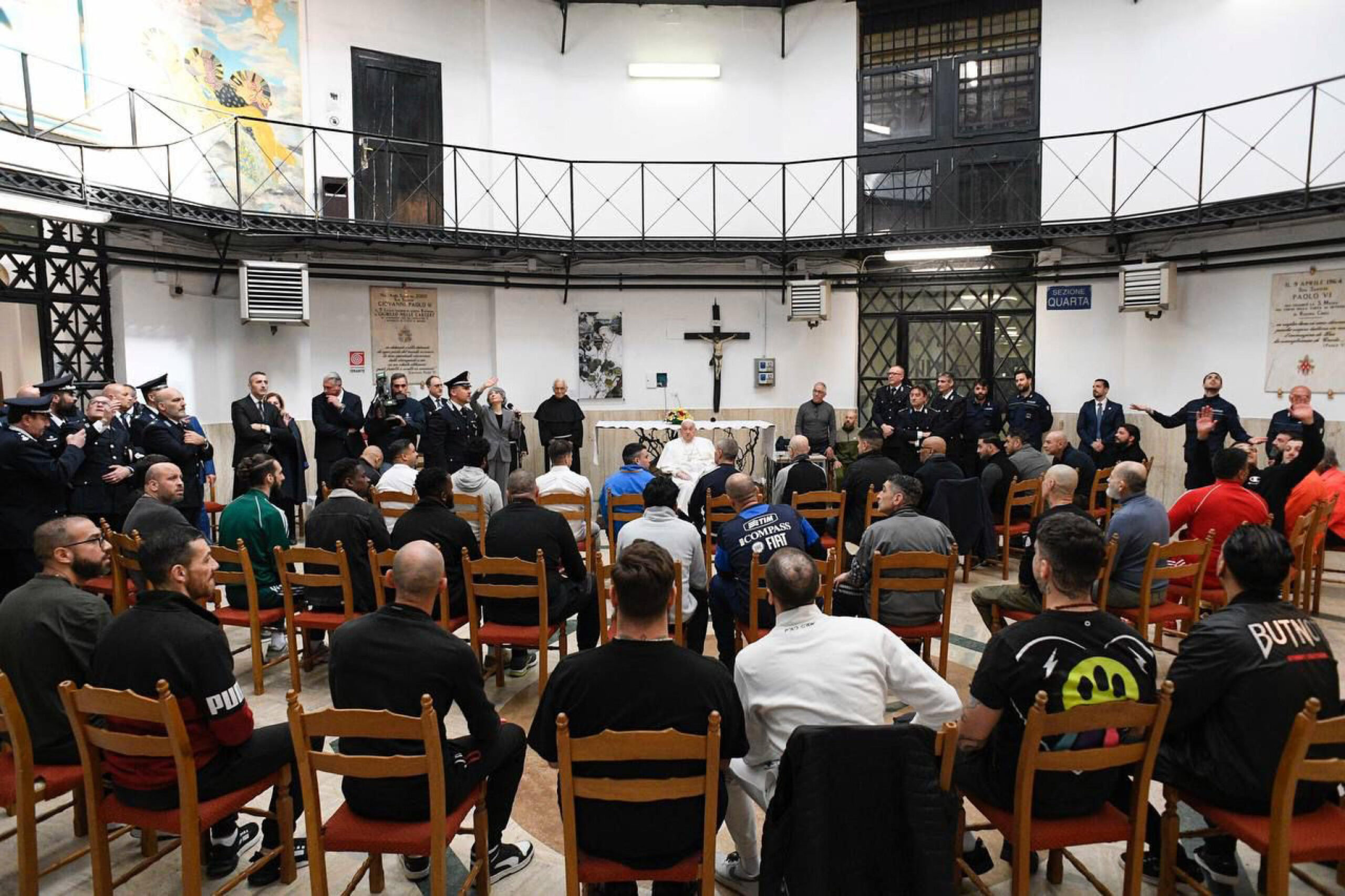 Papa Francesco durante l’incontro con i detenuti nel carcere di Regina Coeli, Roma, 17 aprile 2025 ANSA/ Vatican Media