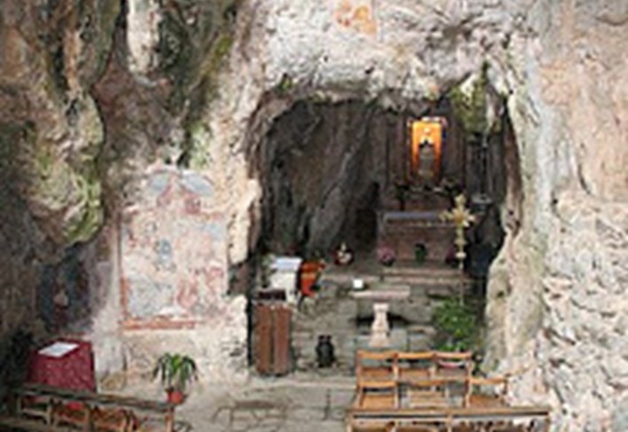 «Come vedete – spiega don Enzo – è incinta come la Donna dell’Apocalisse. Dove c’era lei, il diavolo – che sempre insidiava i rifugi degli antichi anacoreti – doveva sloggiare. Ecco il motivo per cui in grotte come questa non mancava mai una effigie dell’arcangelo Michele: spettava a lui scacciare il demonio. Questa immagine mariana è molto venerata dai fedeli che giungono qui, specie da quanti desiderano un figlio. E non sono pochi i matrimoni celebrati in questo luogo da aprile a ottobre: oggi stesso aspetto altri due sposi». Un’analoga bella raffigurazione di Maria, dipinta su tela però, la troveremo salendo al conventino e alla settecentesca chiesetta superiore: è questa che nella notte fra il 14 e il 15 agosto i fedeli saliti fin quassù porteranno in processione prima della messa presenziata dal vescovo locale e della successiva veglia.