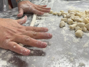 Durante la preparazione degli gnocchi (ph Marzia Bernardini)