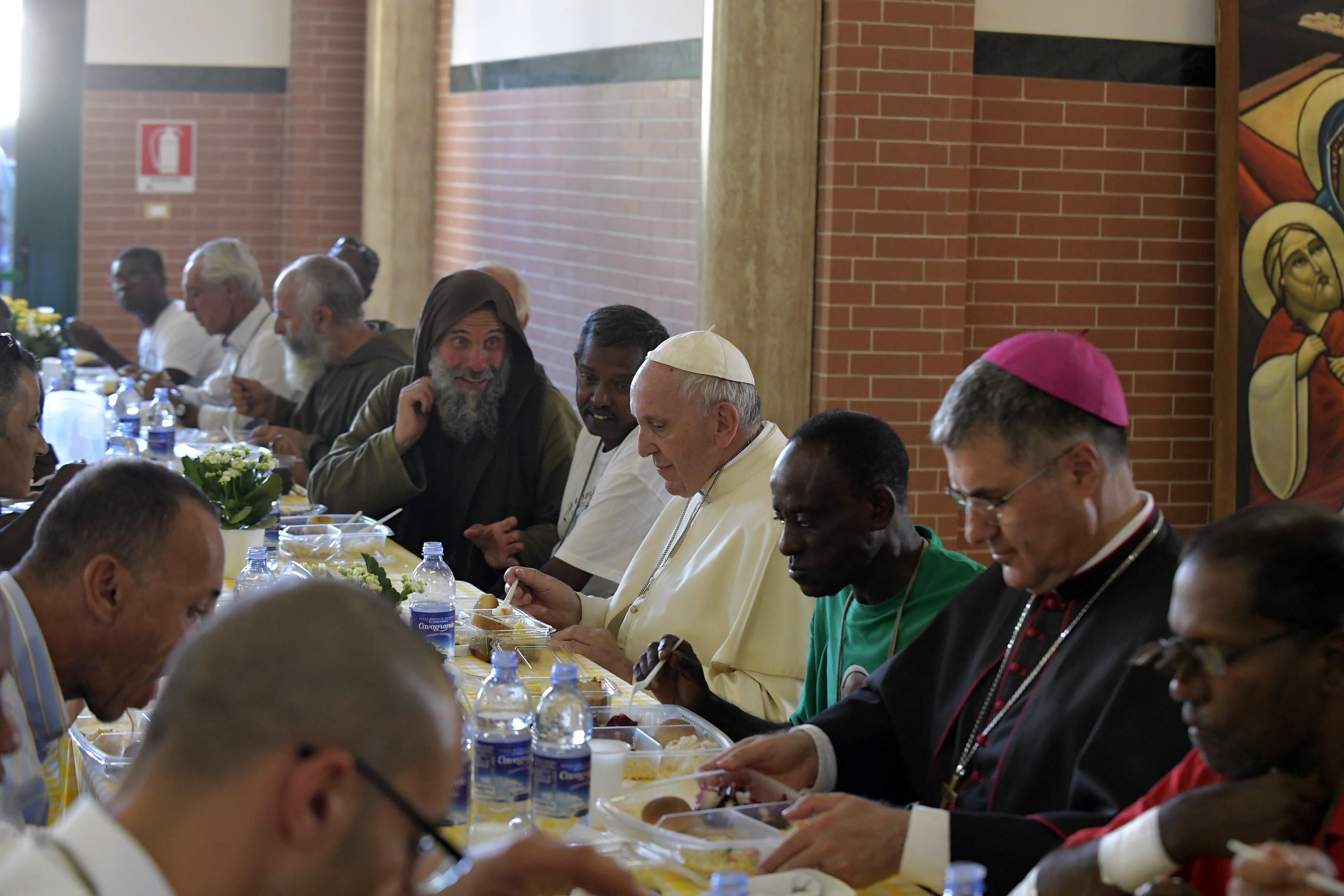 Tale sensazione è stata forte anche alla “Cittadella del Povero e della Speranza” di via Decollati, a Palermo, una delle sedi fondate dal missionario laico Biagio Conte, che da ospitalità – tramite la sola provvidenza e i prodotti delle terre coltivate – a circa mille senzatetto, con cui papa Francesco, dopo la messa, ha voluto soffermarsi per condividere il pranzo con alcuni di loro (160 persone in tutto, tra migranti, disabili e senza lavoro), con padre Pino Vitrano, l’arcivescovo di Palermo mons. Lorefice e, ovviamente, fratel Biagio.