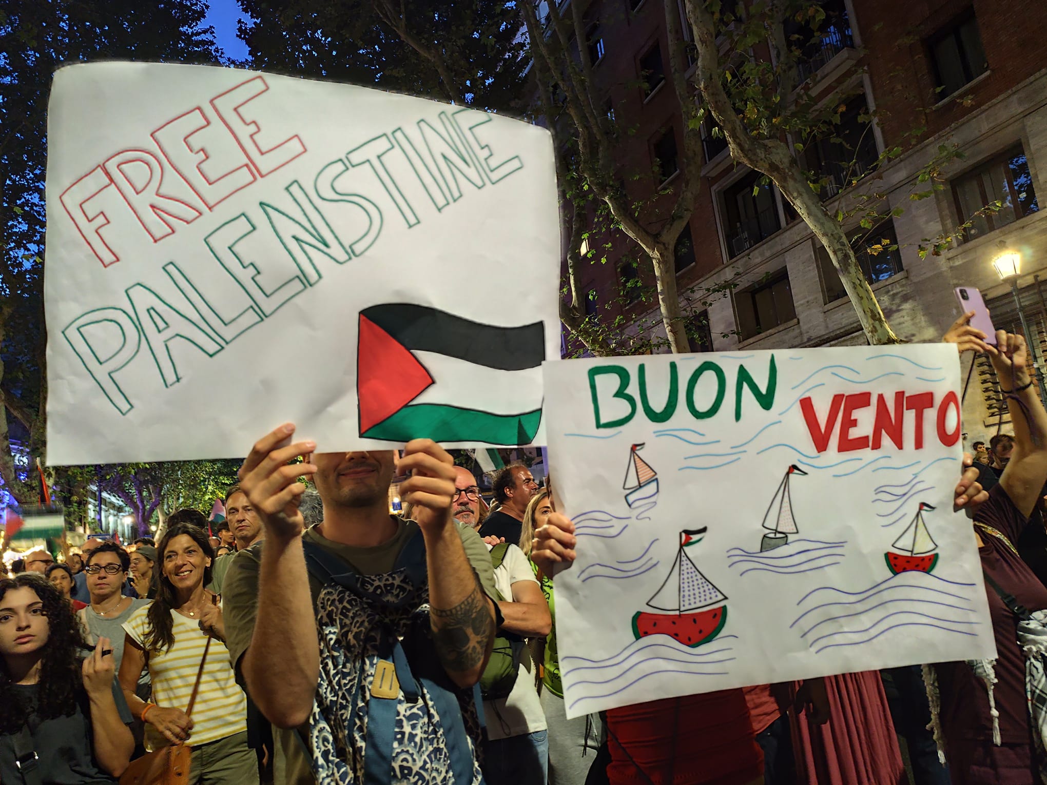 In Italia – per “dare visibilità alla causa palestinese, rompere l’assedio illegale e il genocidio in corso a Gaza da parte di Israele», per il cessate il fuoco immediato e l’arrivo degli aiuti alla popolazione e il rispetto dei loro diritti umani – decine e decine di migliaia di persone, da Torino a Roma, da Catania a Napoli stanno scendendo in piazza per sostenere la Global Sumud Flotilla.