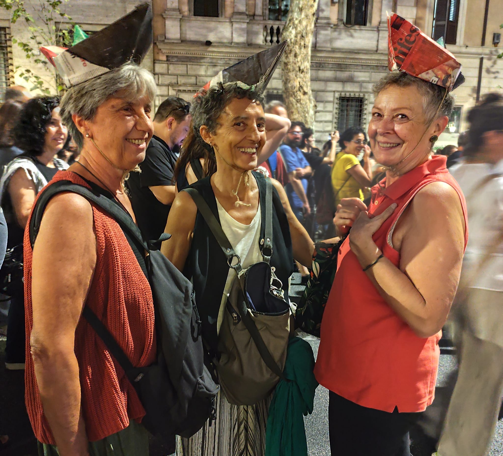 A Roma, in piazza Vittorio, domenica sera i manifestanti sono arrivati con le stampelle dei disabili e i bastoni degli anziani, finanche con i respiratori e i deambulatori per invalidi, con i passeggini dei neonati e le carrozzine per bambini, con i cani e con le valigie, con biciclette e con strumenti musicali, con coperchi e mestoli per farsi sentire da istituzioni e mass media che faticano ancora a rilanciare questa grande mobilitazione.