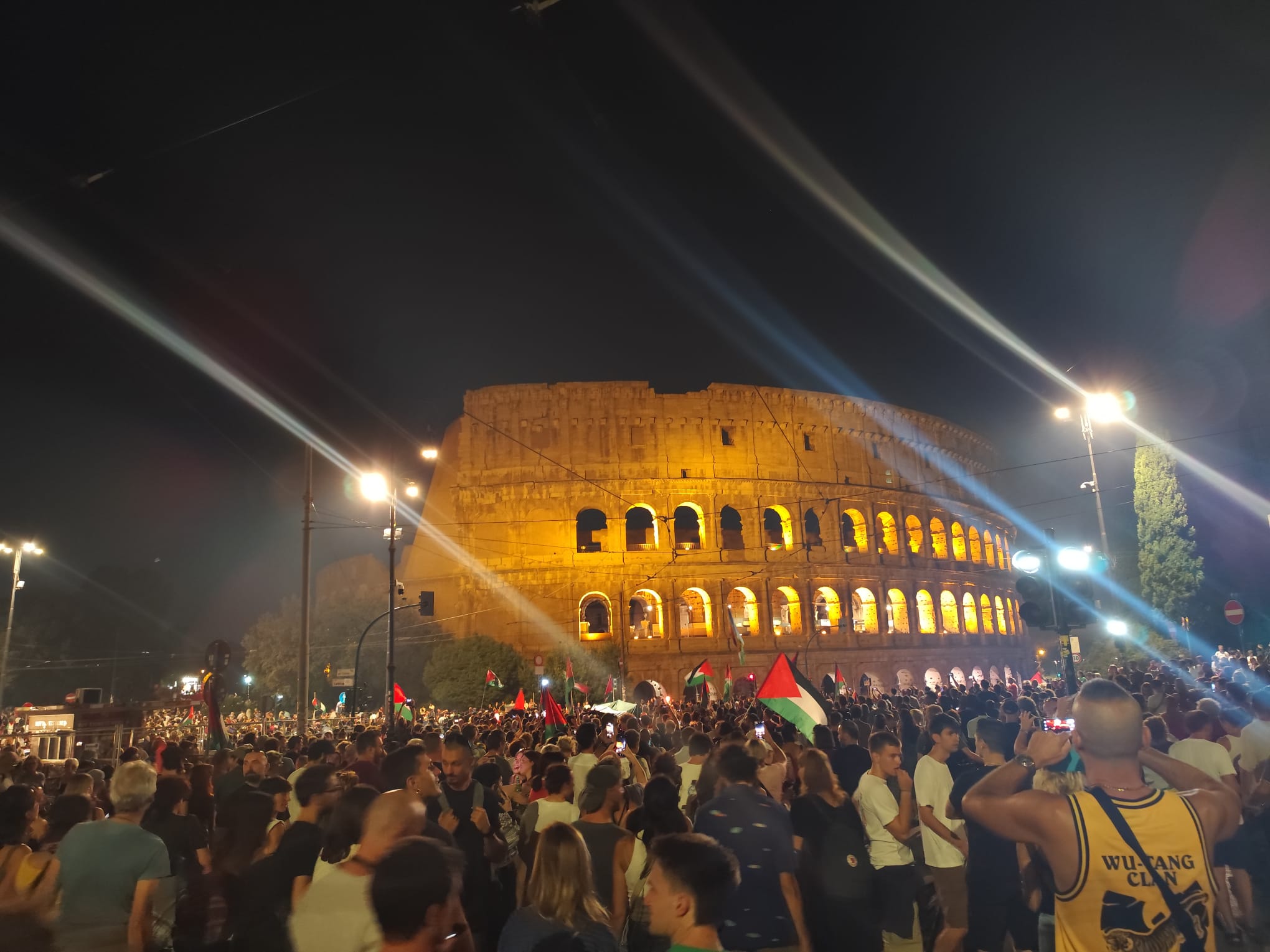 Com’è stato detto nel corso della manifestazione romana della Global Sumud Flotilla, se i governi non si muovono, si muove la folla, si muove il popolo. Come hanno fatto per esempio in Sardegna, dove alcuni cittadini hanno accolto con bandiere palestinesi e scandendo “free Palestine” i militari israeliani che vengono condotti in Italia per riposare. Una procedura che dura ormai da anni, con moltissime proteste dei residenti.