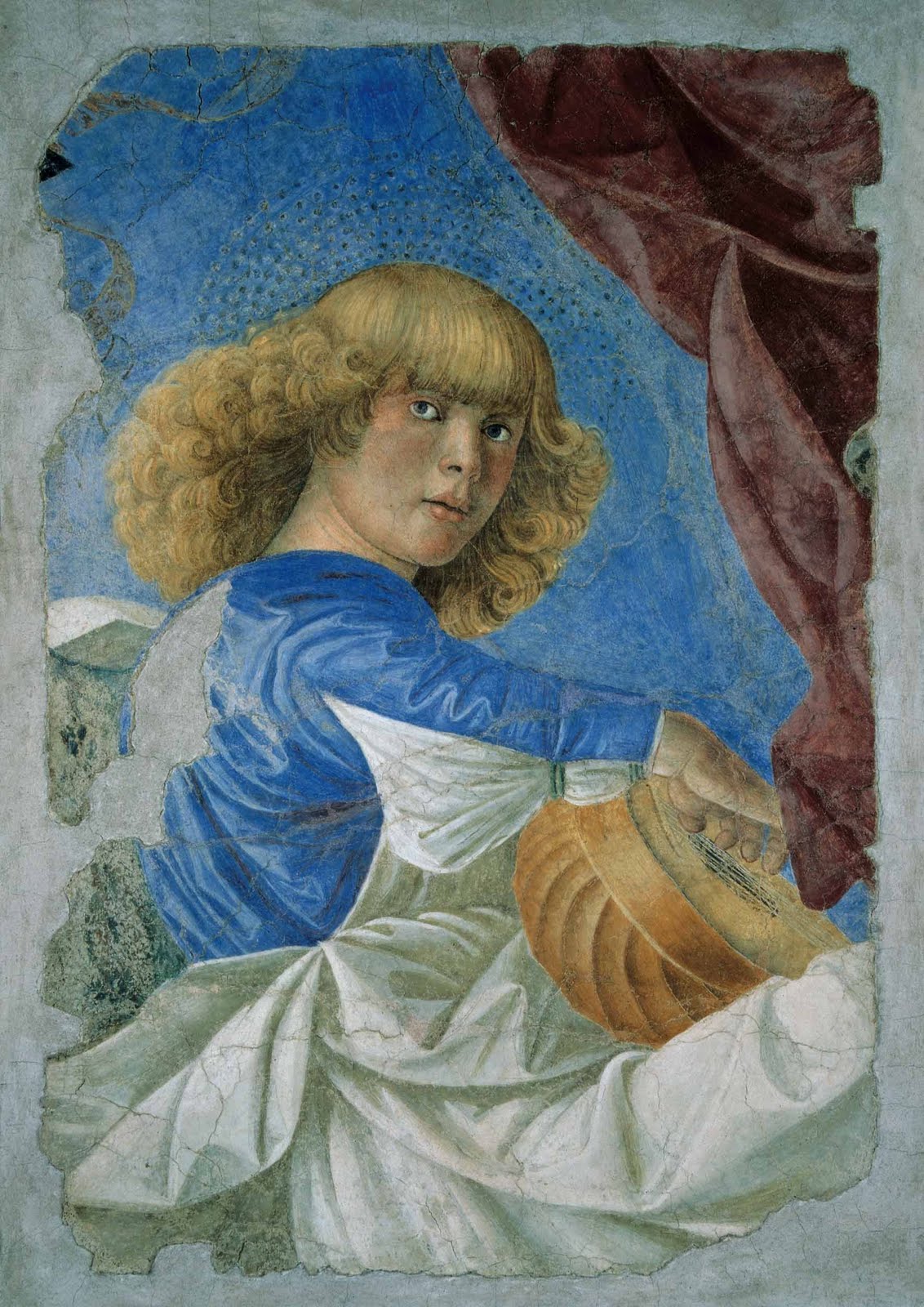 Sono felici gli angeli di Melozzo. Ragazzi che suonano il liuto, la viola, i tamburelli. Splendidi nell’azzurro del cielo. Hanno capelli fluenti, vesti gonfiate dal vento, colori smaglianti. E sono solidi. Come le creature di Piero della Francesca. Ma non impassibili. Stanno festosi a dominare lo spazio. È il paradiso, certo. Ma un paradiso di corpi risorti, pieni di vigore e di giovinezza eterna. Chi non li conosce e non li ha visti mille volte riprodotti?