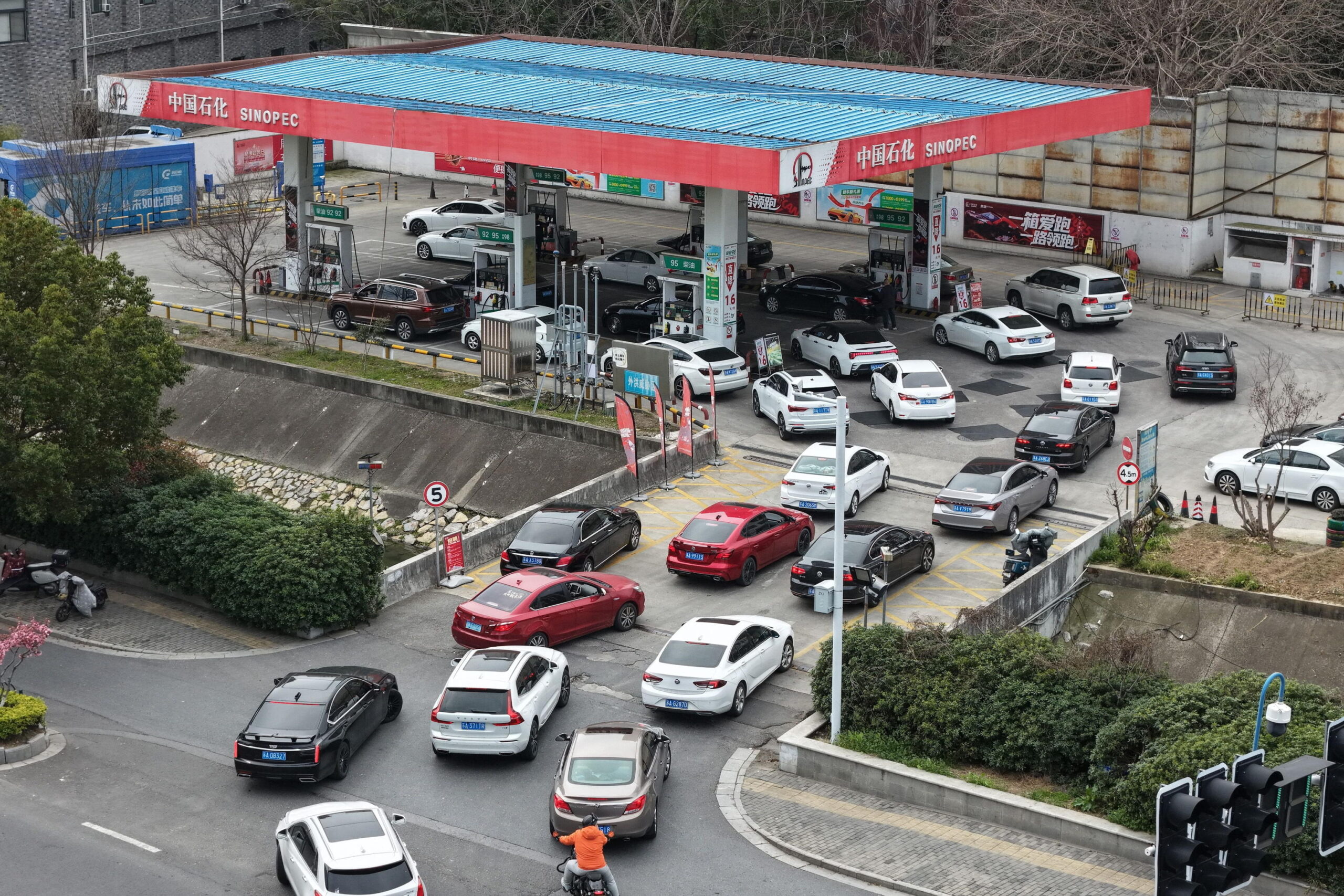 Automobilisti in fila per fare rifornimento a una stazione di servizio a Nanchino, provincia di Jiangsu, Cina, 23 marzo 2026. Ansa, EPA/FANG DONGXU