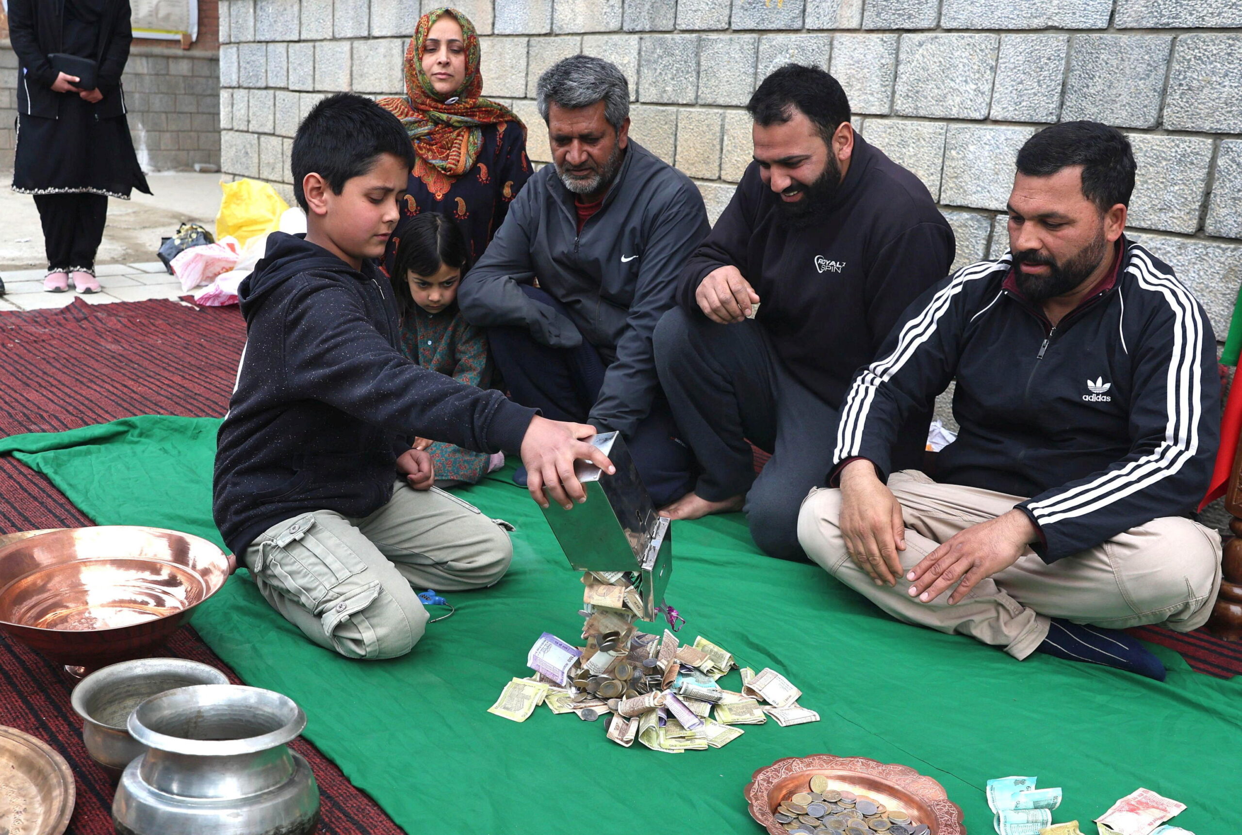 Un bambino musulmano sciita apre il suo salvadanaio per donare denaro all’Iran durante una raccolta fondi a Srinagar, Kashmir, India, il 23 marzo 2026, per aiutare la popolazione iraniana. Ansa, EPA/FAROOQ KHAN