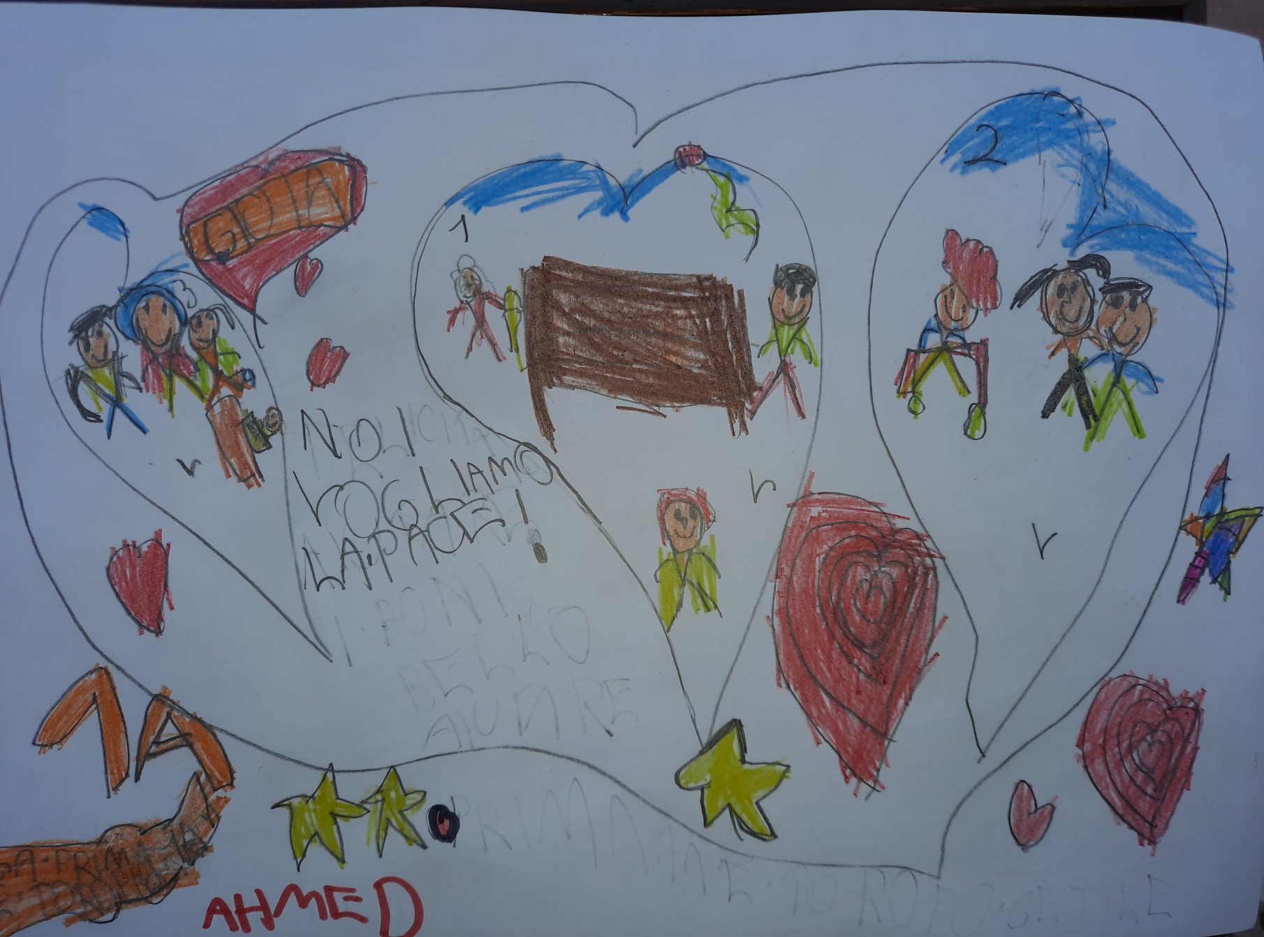 «Bambini dell’Ucraina – scrive Ahmed –, se siete tristi, venite vicini a me e giochiamo insieme. Con l’amicizia facciamo la pace e non la guerra». Emma dice: «Io penso che la guerra è una cosa che fa soffrire le persone e io vorrei che tutti smettessero di fare le guerre. Io ho un’idea: tutti i bambini devono scrivere cartelli e delle lettere con delle parole di pace, di gentilezza e di amicizia per fermare la guerra». “L’amore della vita – dice Giacomo – ci circonda. Con la guerra l’amore si strappa! Ed è per questo che si fa la pace!”.